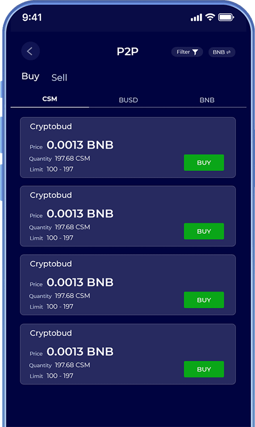 Users can easily buy, sell and trade crypto directly with other users, while setting their preferred prices and payment methods in an open crypto marketplace.